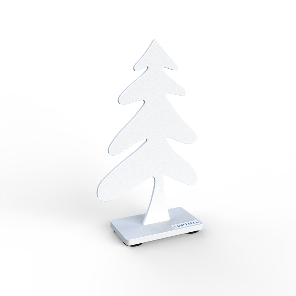 Julens granar pyntas med alltifrån ljus, kulor, glitter och barnens hemgjorda pyssel. Lonnebergs gran trivs bäst som den är utan pynt.